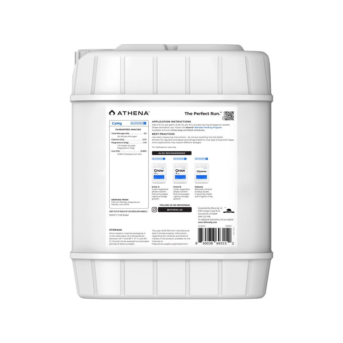 Athena CaMg is designed to supplement either of our 2-part liquid formulas. Some cultivars and growing conditions may require higher doses of Calcium, Magnesium, Iron and Nitrogen during heavy growth and development phases. This product effectively corrects these common deficiencies without throwing off overall elemental balance. In systems using reverse osmosis (RO) water and plants grown in inert media, such as coco and rockwool, Athena CaMg is particularly useful. Although our 2-part formulas already provide sufficient levels of Calcium and Magnesium, some growers require find supplementation helpful in demanding conditions.