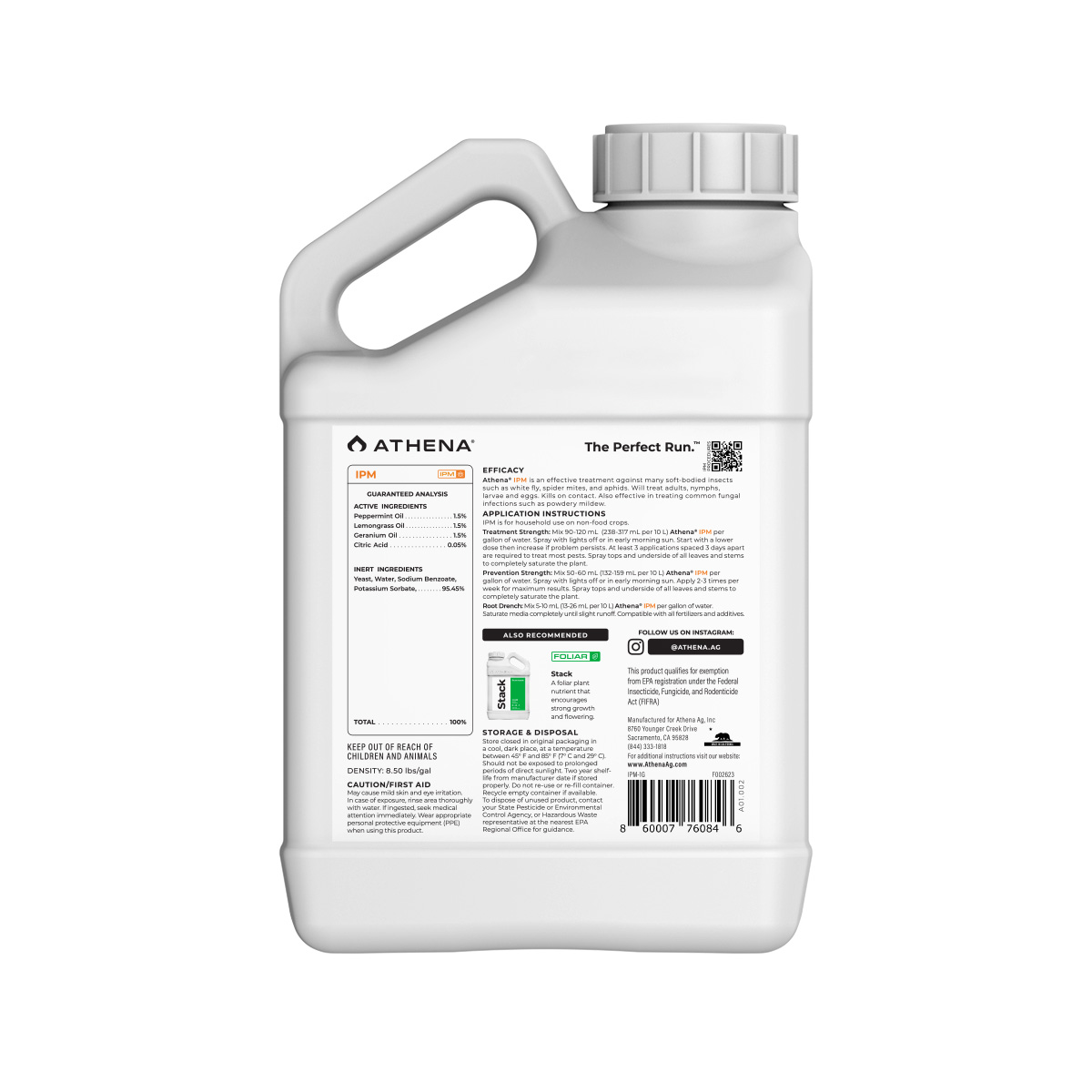 Athena IPM is a complete pest management formula that kills many soft-bodied insects and mildew on contact. When used as directed, Athena IPM penetrates plant crevices and leaf surfaces where unwanted biotic diseases seek to colonize.